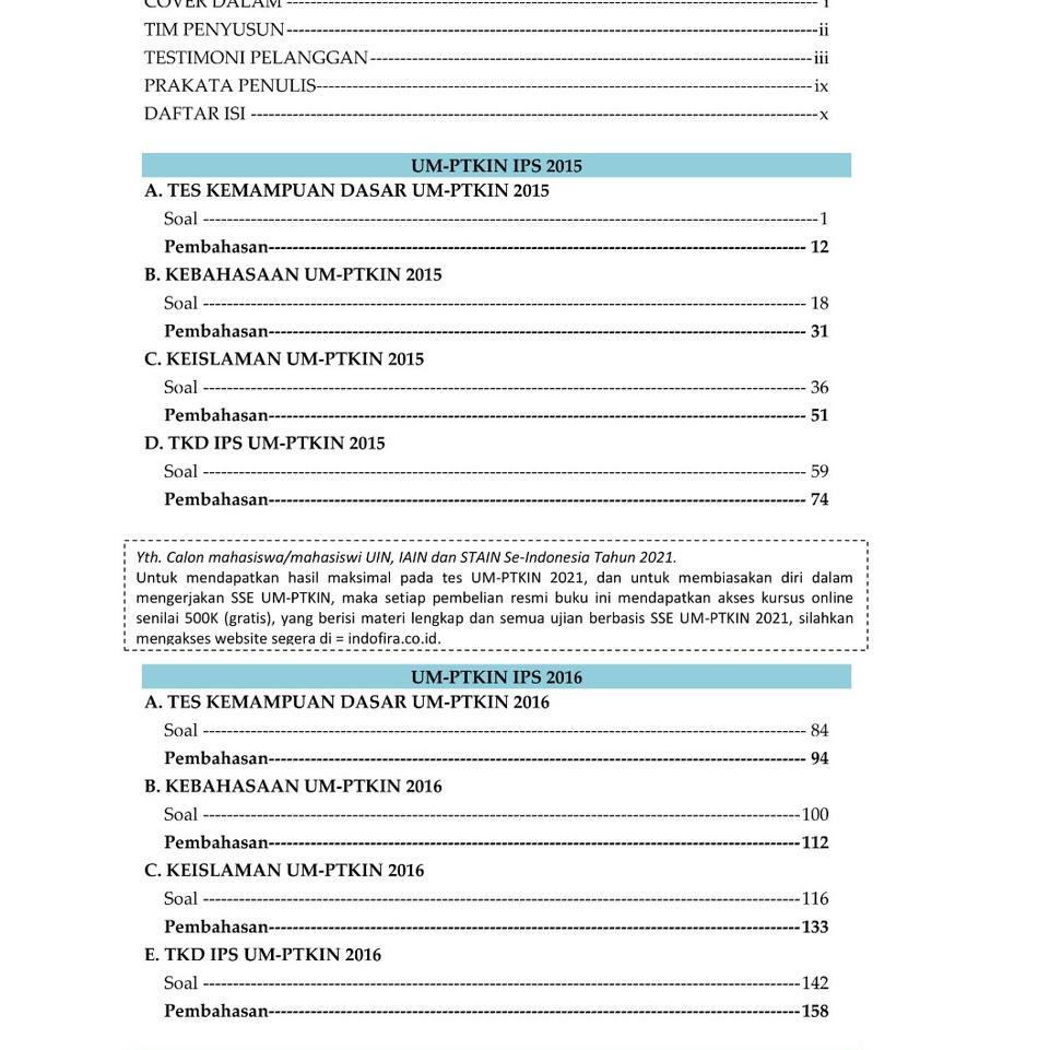 Sudah dilengapi dengan kumpulan ringkasan materi umptkin agar mudah untuk belajar tebal buku um ptkin 2021 ips (357 halaman) buku um ptkin 2021 ipa (349 . Sse ini tidak lagi menggunakan kertas (paperless), baik untuk naskah soal maupun lembar jawaban. Sse ini tidak lagi menggunakan kertas (paperless), baik untuk naskah soal . Soal um ptkin 2019 dan pembahasan soal utbk sbmptn 2021. Belajar materi umptkin yang tanpa ribet? Kumpulan soal soal um ptkin terlengkap dari tahun ke tahun prediksi pembahasan soal. Contoh soal um ptkin 2021 . Persiapan soal um ptkin 2021 dari sekarang! Contoh soal um ptkin 2020 pdf. Mungkin kamu yang sedang mengalami: Umptkin (ujian masuk perguruan tinggi keislaman negeri) adalah tes yang diberlakukan oleh setiap ptn keislaman seperti iain, uin, stain. Um ptkin ipc 2021 gabungan soal um ptkin ipa+ips & bonus akses online di tokopedia ∙ promo pengguna baru ∙ cicilan 0% ∙ kurir instan. Mencari contoh soal um ptkin dan .